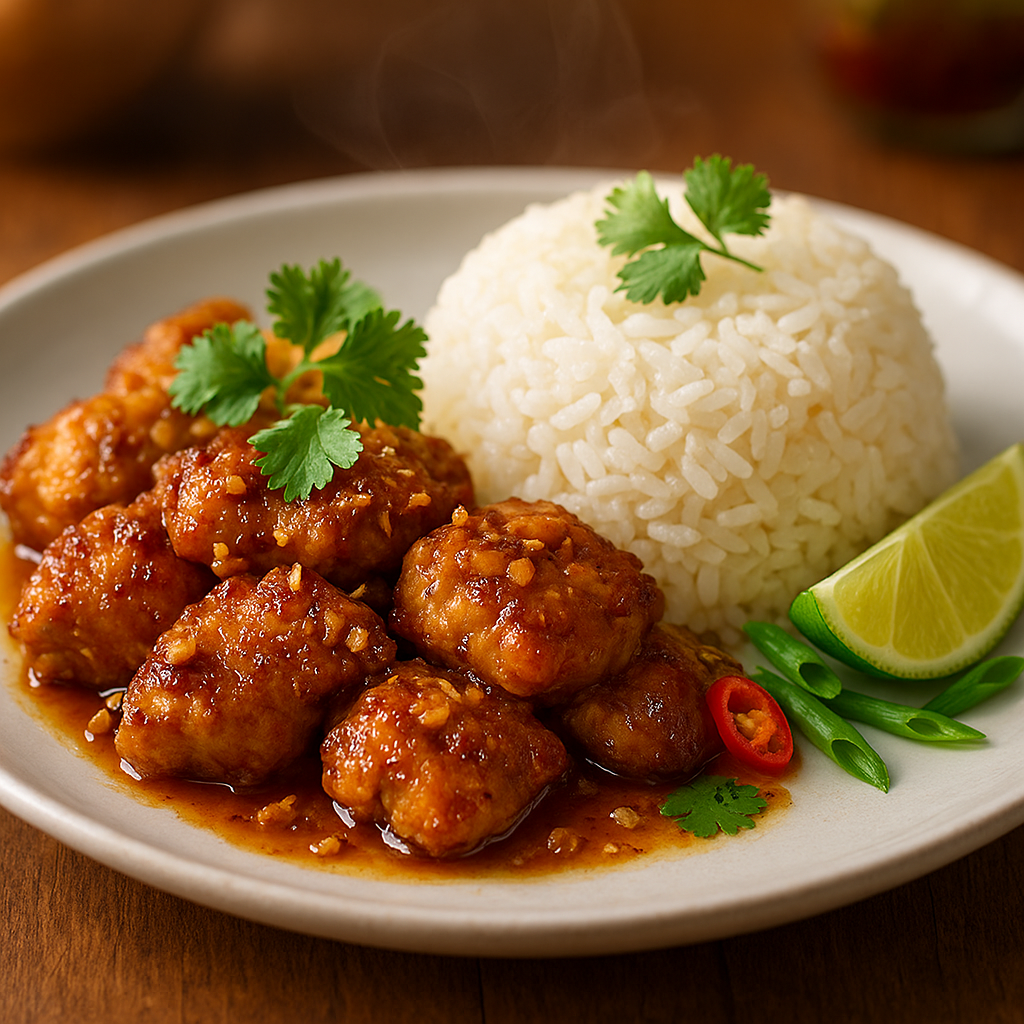 Garlic Chicken, or 'Gai Krathiam', is a beloved Thai dish that combines the aromatic flavors of garlic with tender chicken for a truly mouthwatering experience. This dish is not only easy to prepare but also brings a delightful blend of savory and slightly sweet notes, making it a favorite among both locals and visitors. The key to its uniqueness lies in the generous use of garlic, which infuses the chicken with its rich flavor while creating a fragrant aroma in your kitchen. Perfect for a weeknight dinner or a special occasion, Garlic Chicken is served best with a side of steamed jasmine rice and fresh vegetables. To elevate the dish, consider adding a splash of soy sauce or a sprinkle of fresh cilantro just before serving. With its simplicity and depth of flavor, this dish will surely impress your family and friends!